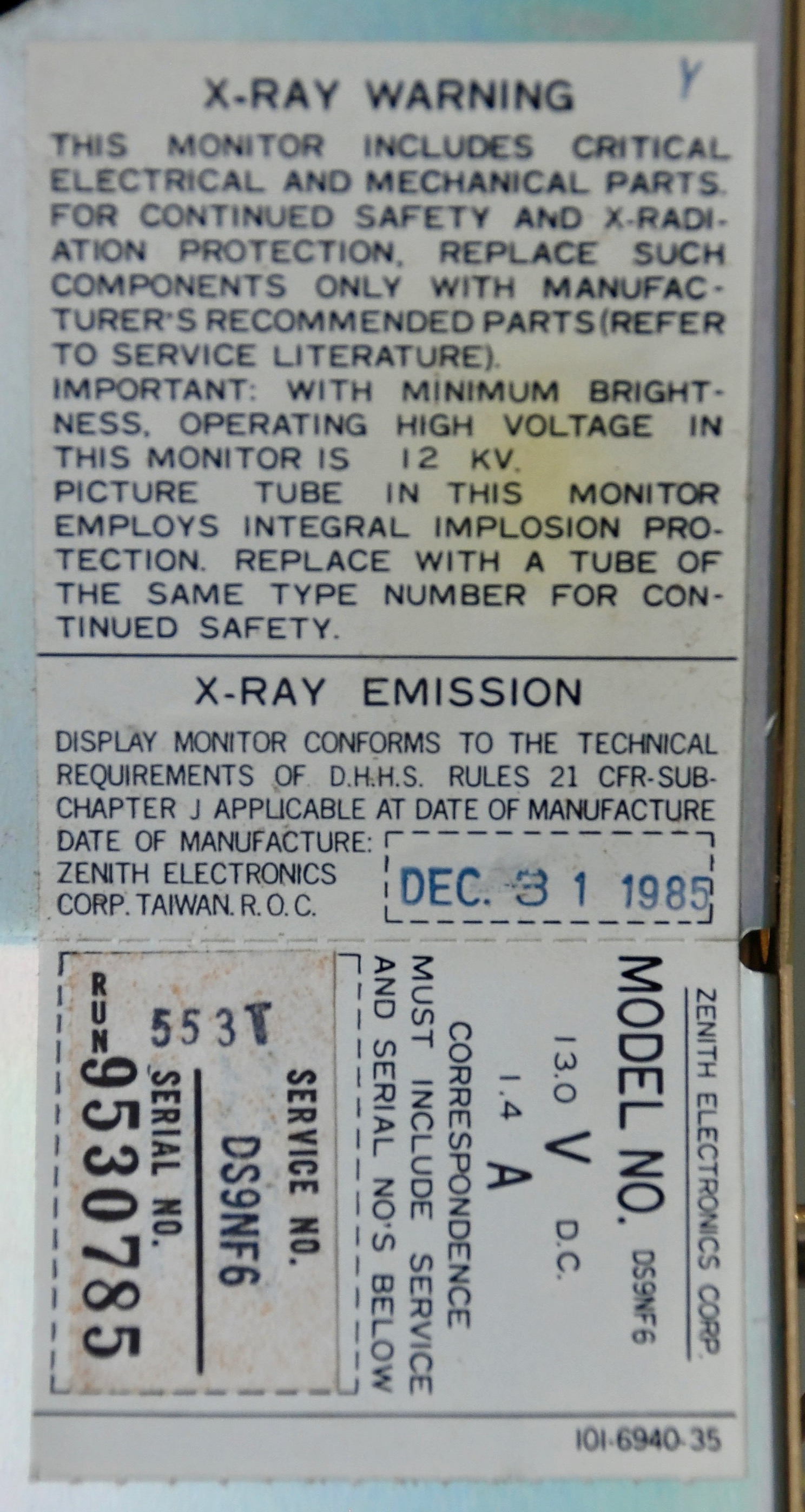 Missing flyback (waiting for a new one to arrive) .. not even sure if other areas from monitor are ok.