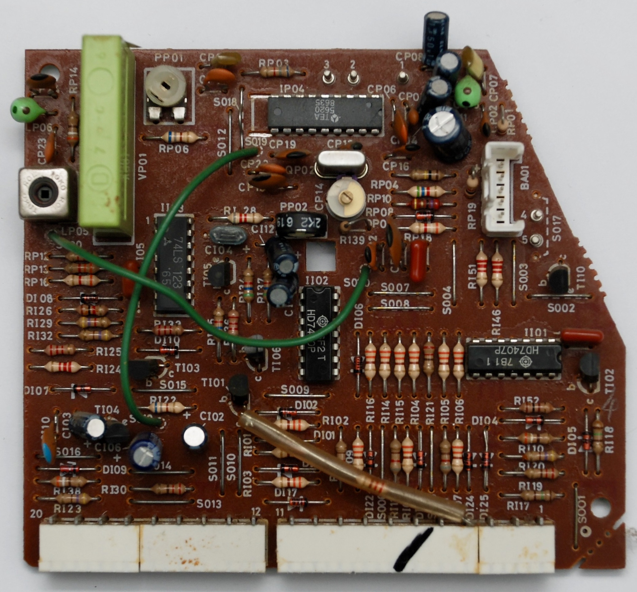 Please note that the correct polarisation of CP04 is as in the photo above, with minus towards the closer edge of the board. It matches the schematics, but is against the mark on the PCB which is incorrect.