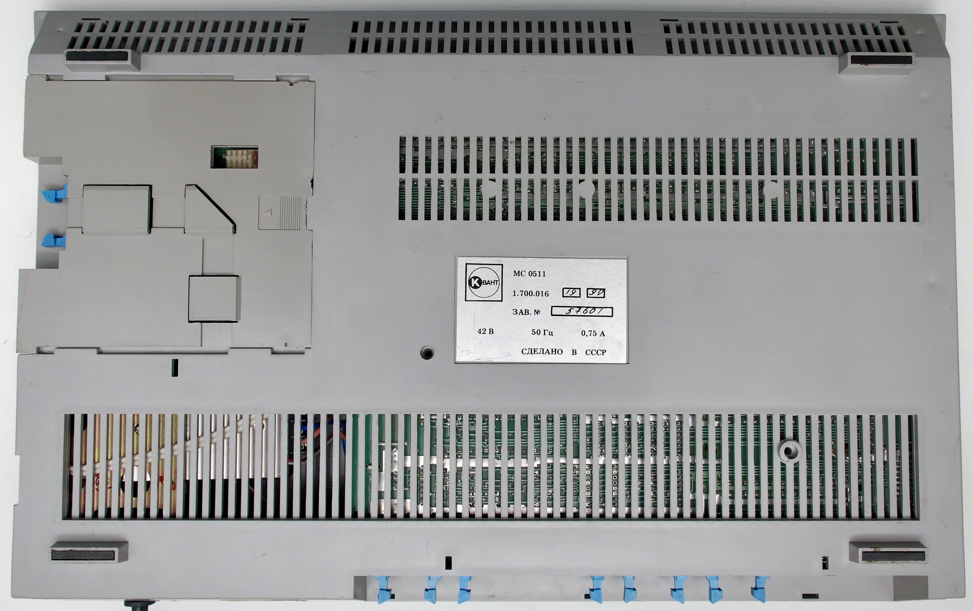 This machine is based on two 16-bit K1801VM2 CPUs that are compatible with PDP-11.